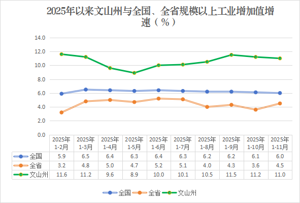 今年以来,坚持大抓产业、主攻工业,扎实开展“深、联、帮”专项行动,加力推进系列稳增长政策措施的落实落细,全州规模以上工业主要行业支撑有力,增加值保持平稳增长。1—11月份,全州规模以上工业增加值同比增长11.0%,增速比全国(6.0%)高5.0个百分点,比全省(4.5%)高6.5个百分点,增速排全省16州市第3位。