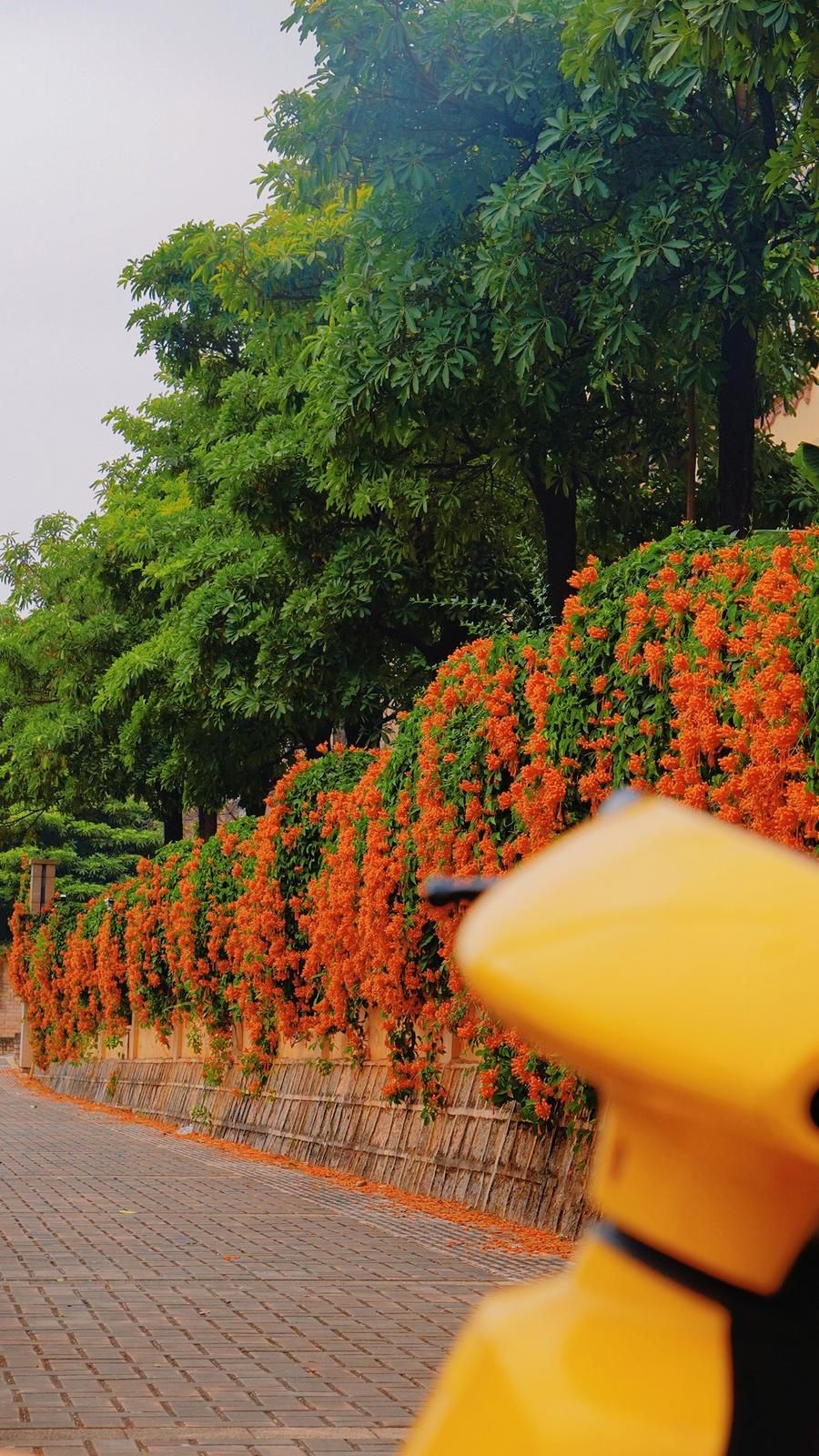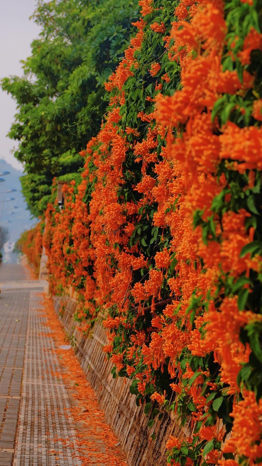 文山城凤凰苑外围墙的炮仗花