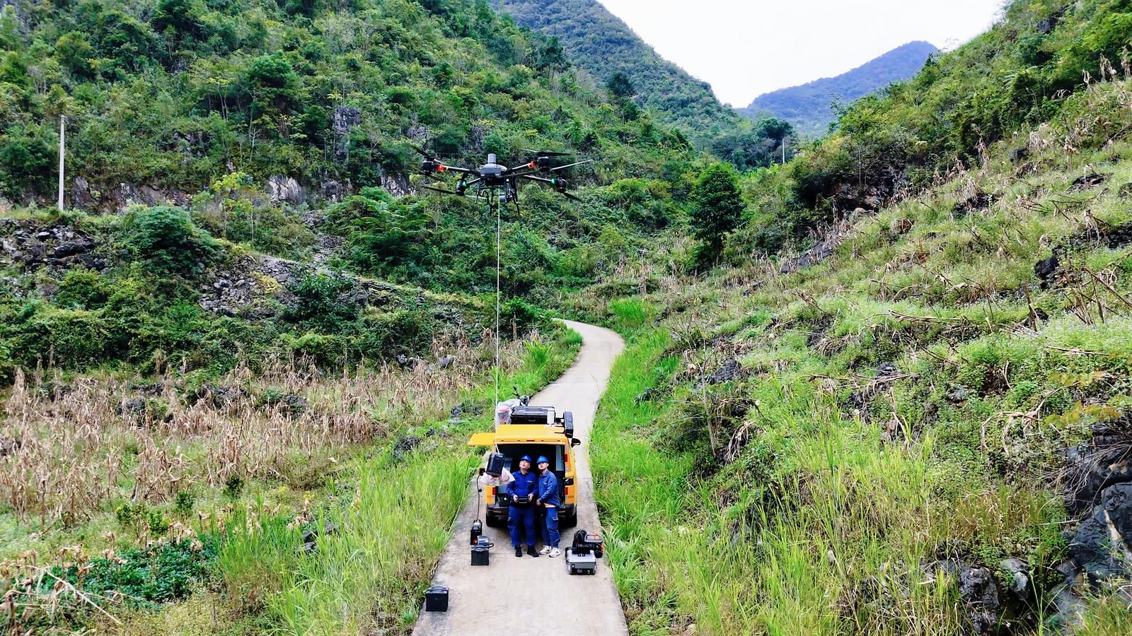 得知情况后,南方电网云南文山广南供电局迅速响应,果断启用“科技救援方案”,第一时间调派专业无人机专班赶赴现场,采用无人机空投的方式,将便携式移动电源、应急照明灯等急需物资,精准投送到村民家中。