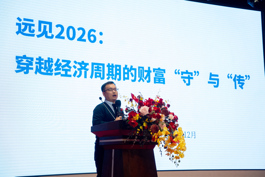 活动现场,行业大咖来寂则老师带来《远见2026:穿越经济周期的财富“守”与“传”》主题讲座,从经济周期规律、财富保值传承等维度展开专业分享,为客户带来满满的财富干货。