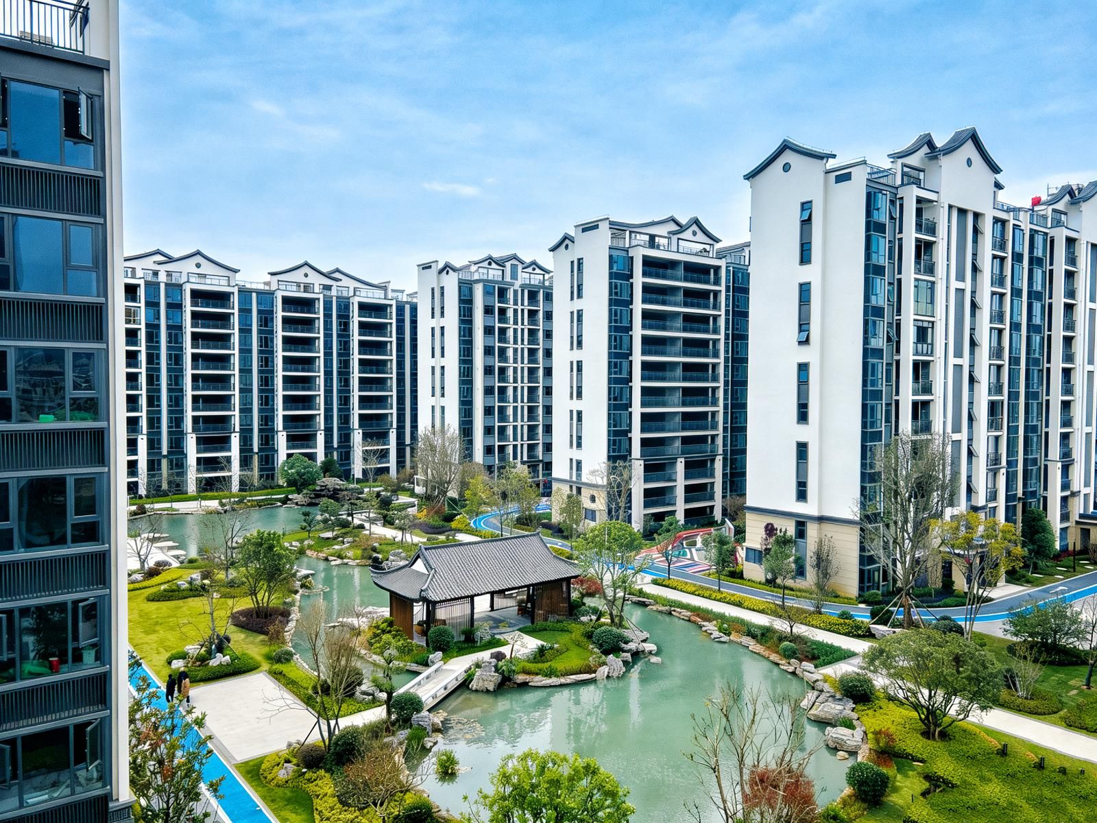 低密之下,勾勒低密舒居的理想模样。以1.79超低容积率、21.5%极低密度,泰和苑让建筑退让于自然。最宽140米超阔楼间距、全人车分流设计,让生活回归静谧与从容;萃取苏州拙政园、北京颐和园等江南园林精华打造的“一环一庭五园六巷”景观,搭配约10000平方米中庭环湖盛景,将侘寂、禅意、洗心三重东方意境融入园林,移步换景间,皆是诗意风光。蒂森克虏伯电梯、星级地下产权车库等TOP级配置,更让奢适融入烟火日常。