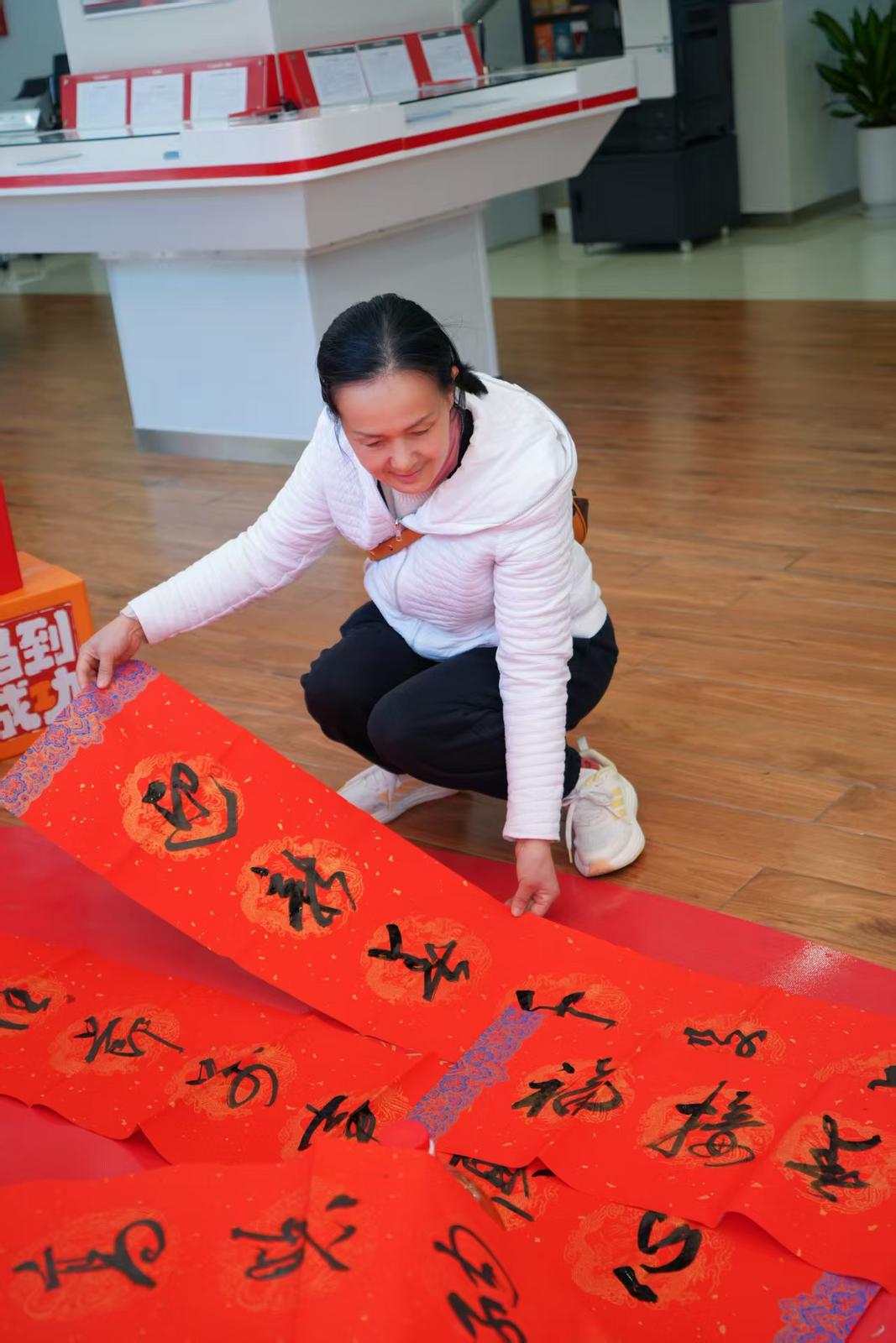 活动当天,文山分行纪委书记赵亚飞一行亲临现场参与活动,与前来办理业务的客户及周边社区居民亲切互动。现场群众或驻足欣赏书法创作,或精心挑选寓意吉祥的联语,或兴致勃勃地观摩书法家挥毫泼墨。支行工作人员热情周到地为市民讲解活动内容、协助挑选春联,并将一副副饱含温度与祝福的“福”字和春联送到大家手中。许多市民手持墨迹未干的春联拍照留念,纷纷表示:“这样的活动既弘扬了传统文化,又拉近了银行与客户的距离,年味十足、暖意融融!”