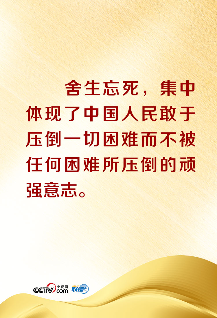 “在这场同严重疫情的殊死较量中,中国人民和中华民族以敢于斗争、敢于胜利的大无畏气概,铸就了生命至上、举国同心、舍生忘死、尊重科学、命运与共的伟大抗疫精神。”总书记还在讲话中特别概括、阐释了伟大抗疫精神,并深刻指出,伟大抗疫精神,同中华民族长期形成的特质禀赋和文化基因一脉相承,是爱国主义、集体主义、社会主义精神的传承和发展,是中国精神的生动诠释,丰富了民族精神和时代精神的内涵。央视网《联播+》栏目特对相关内容进行梳理,与您共同在伟大精神中感受伟大的力量!