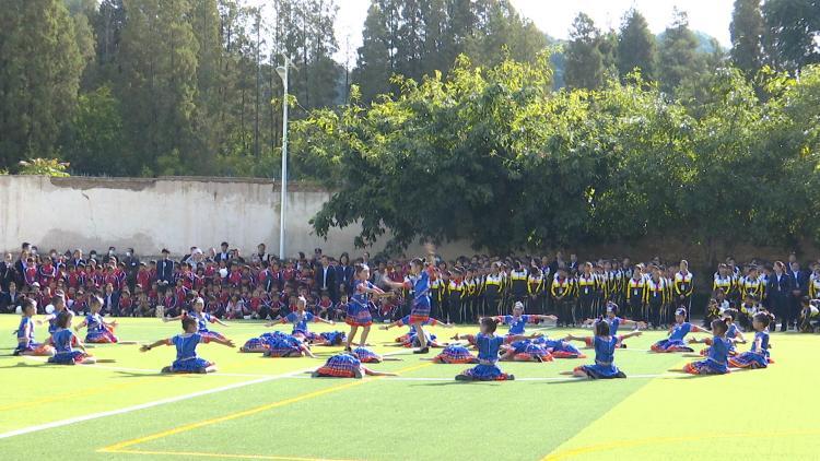 随后,舞蹈《搓豆豆》、合唱《祖国之子》《铁甲雄风》《毛泽东诗词朗诵》《牛角尖尖》《武术表演》《啦啦操》《彝族三步弦、霸王鞭、芦笙》等15个精彩节目纷纷上演,特别是《牛角尖尖》《彝族三步弦、霸王鞭、芦笙》等富有民族特色的舞蹈让人耳目一新。表演结束后,四年级学生杨西向记者介绍,他们排练这个舞蹈已有2年时间,灵动的舞蹈动作和诙谐幽默的音乐让自己感受到了舞蹈带来的乐趣,也增强了自己表演的信心。