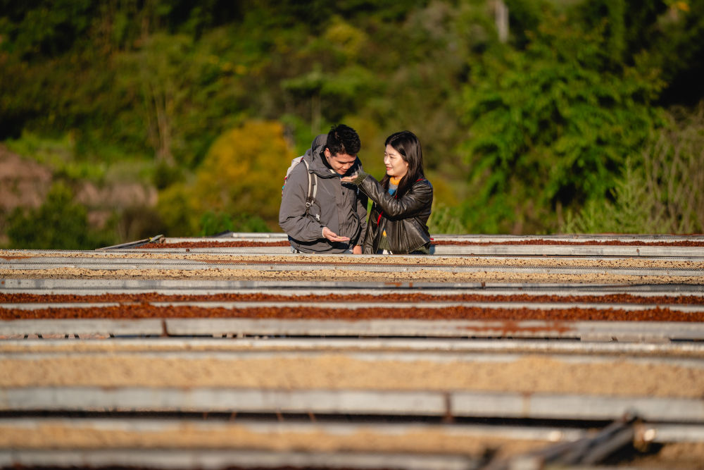 2025年1月7日,游客在普洱市思茅区大开河梅子咖啡庄园参观咖啡晒场。近年来,普洱当地持续投入资金,支持咖啡产业发展演变,一批集观光、采摘、品鉴和生产、加工于一体的咖啡庄园,吸引了各地游客前来感受咖啡文化。