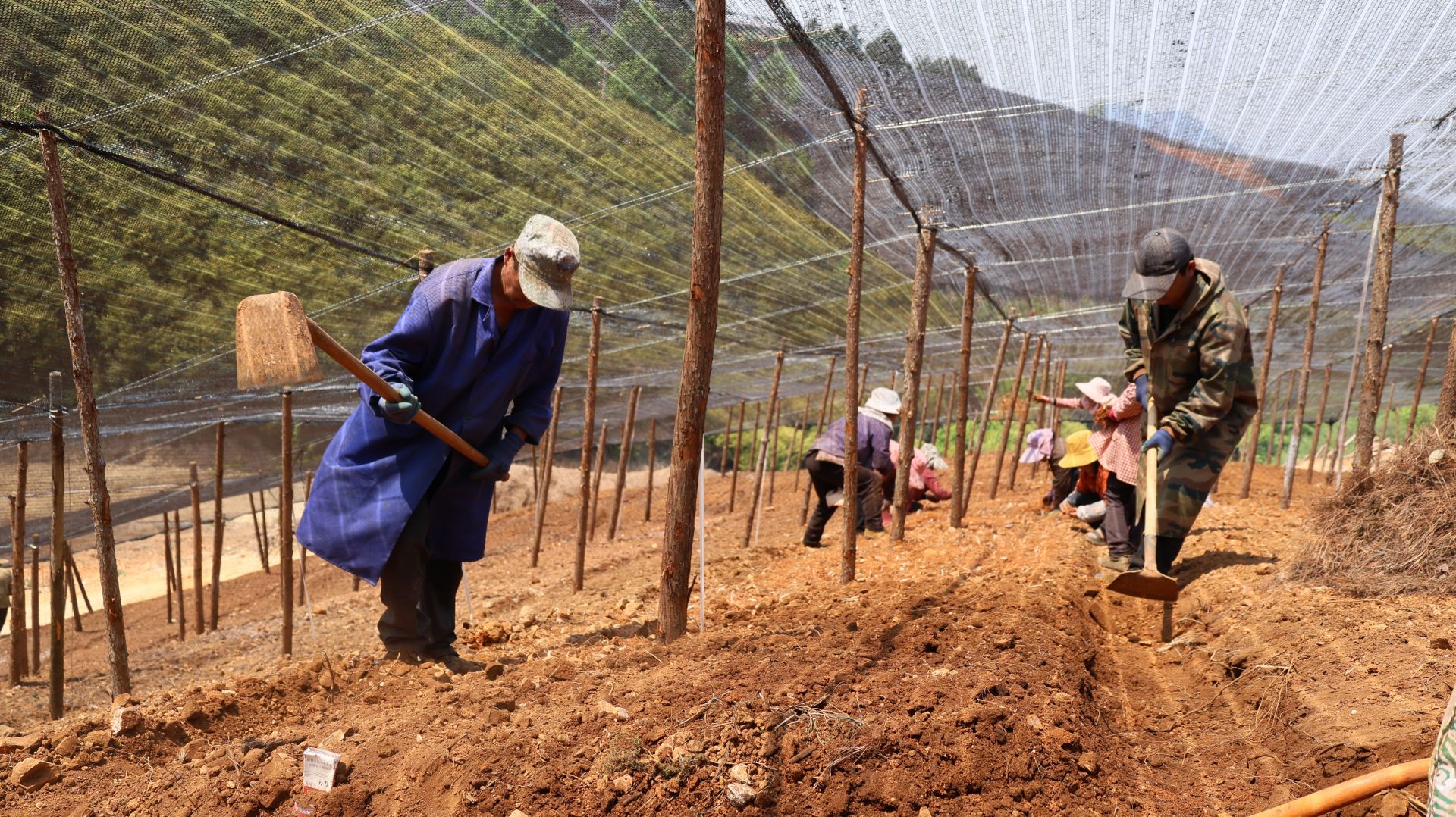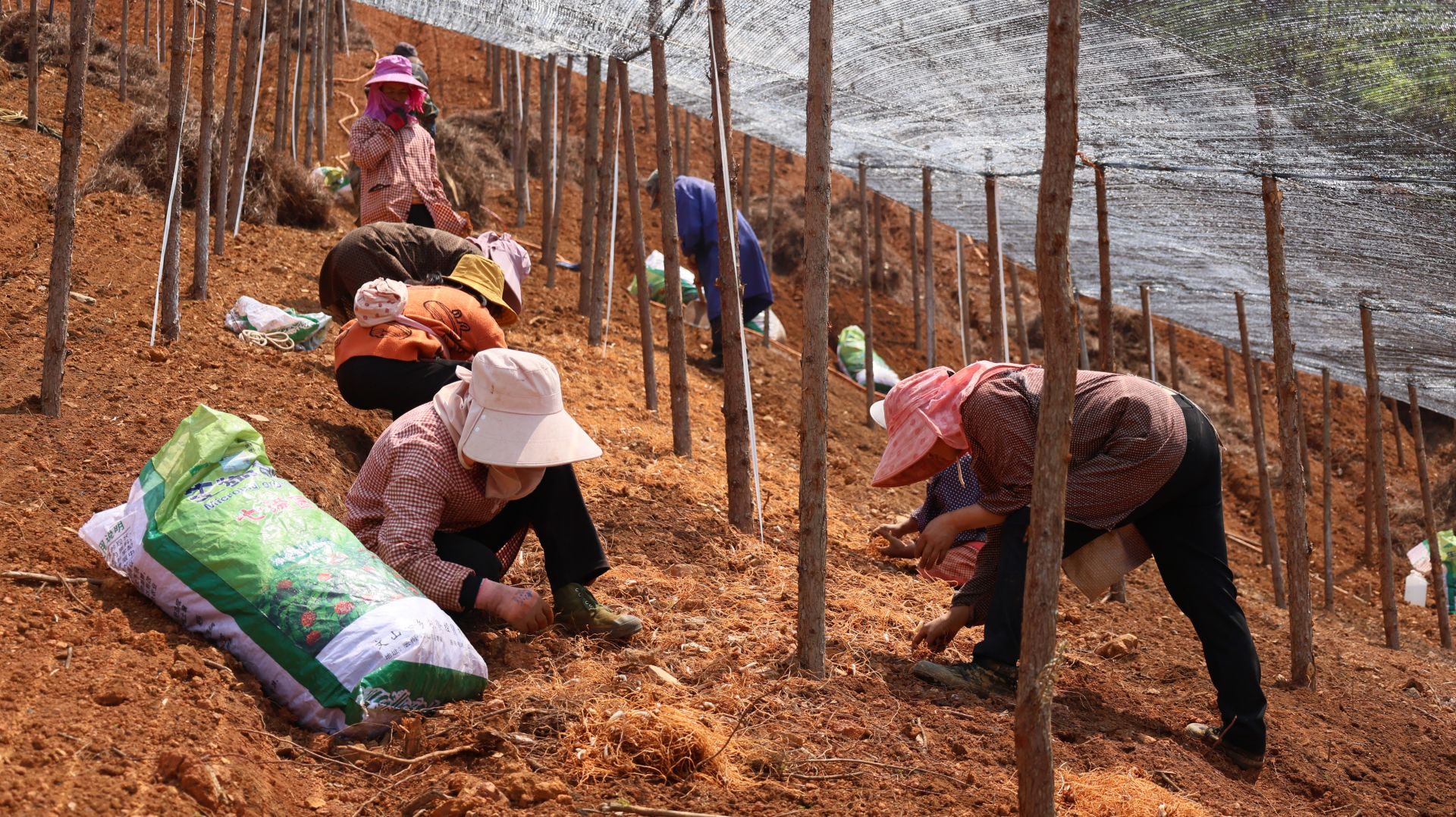 文山逸龙生物科技有限公司鲁得克基地负责人朱子燕介绍:“我们的种苗都是自己培育的,一般是年前育苗、年后栽种,育苗要三年,种下去之后还需要管4年,我们基地今年计划种200多亩,一天能种5-6亩,估计还需要两个月才能种完。”